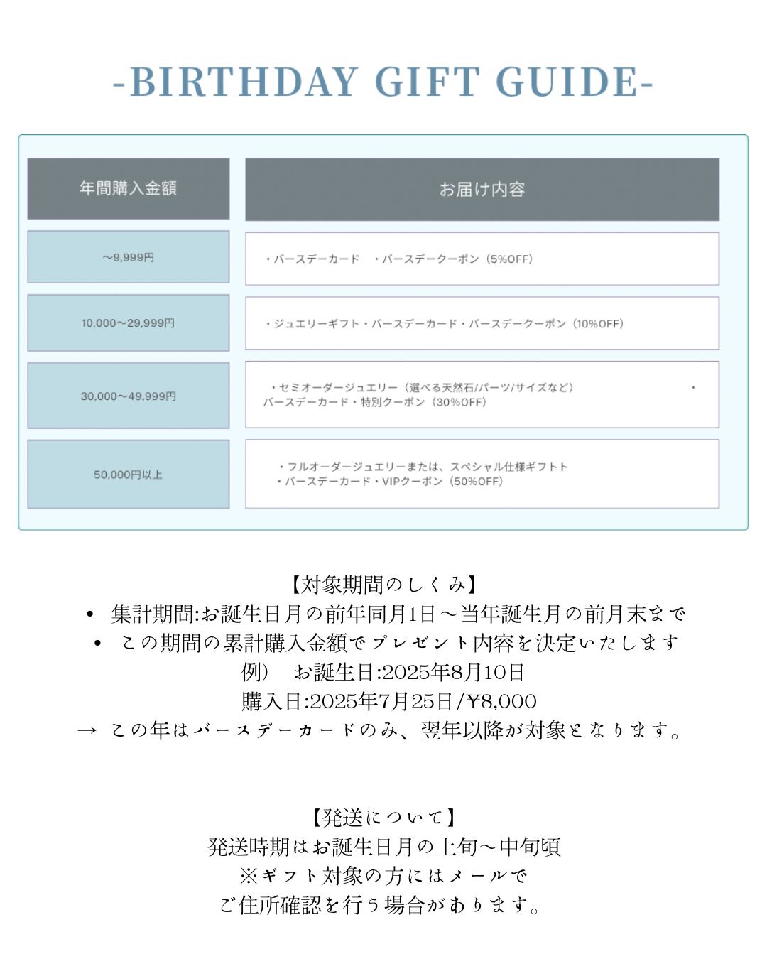 → この年はバースデーカードのみ、翌年以降が対象となります。