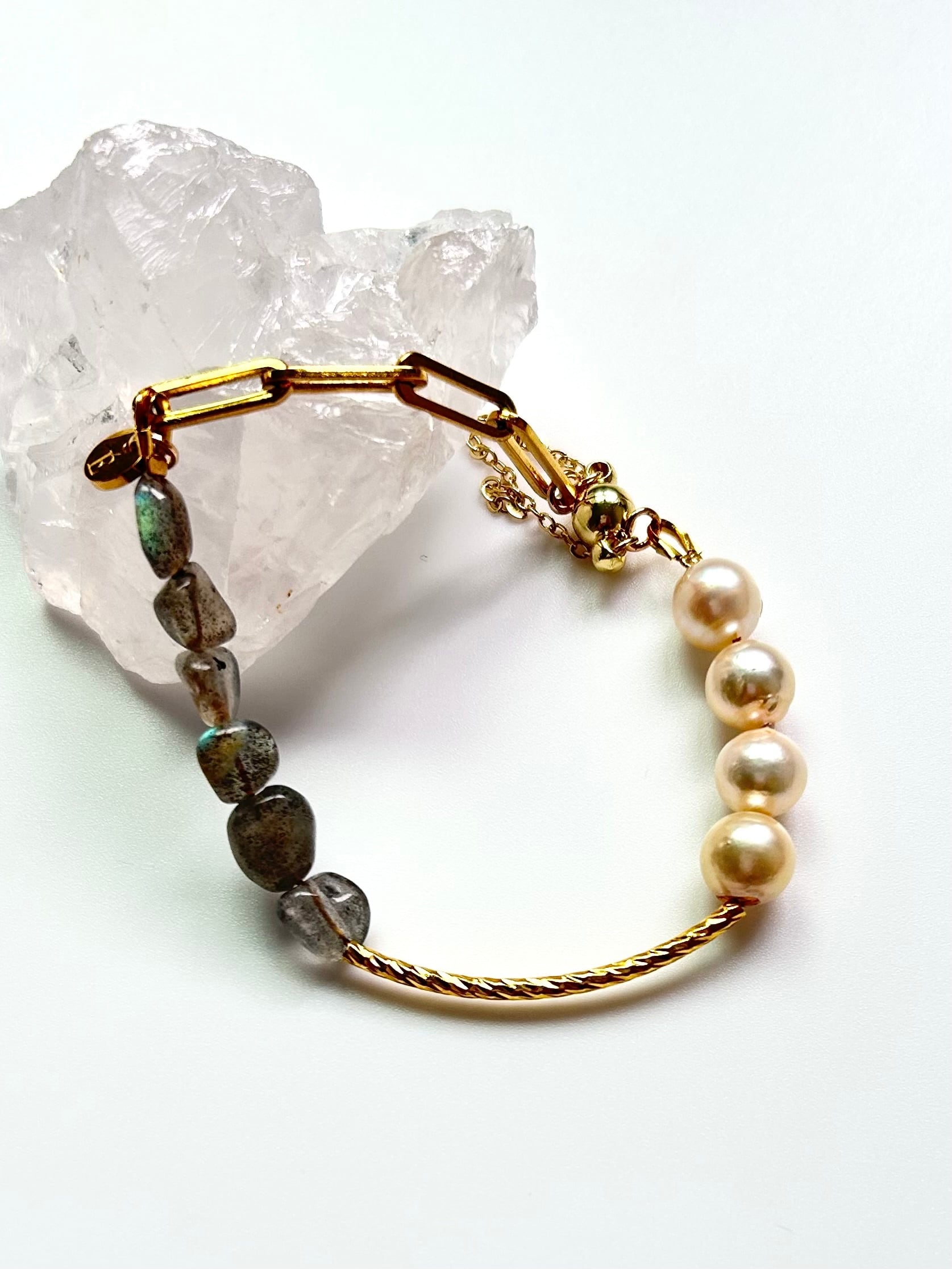 送料無料/AKOYA PEARL/ LABRADORITE bracelet