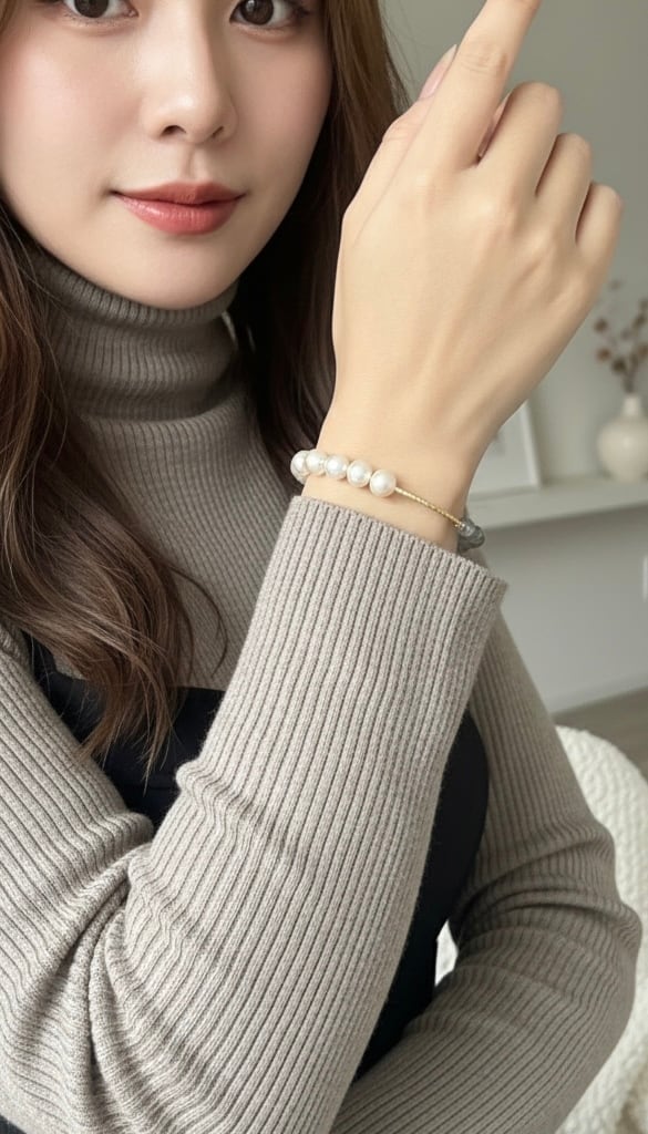 ゴールドチェーンが全体を引き締め、上品さと個性を両立。