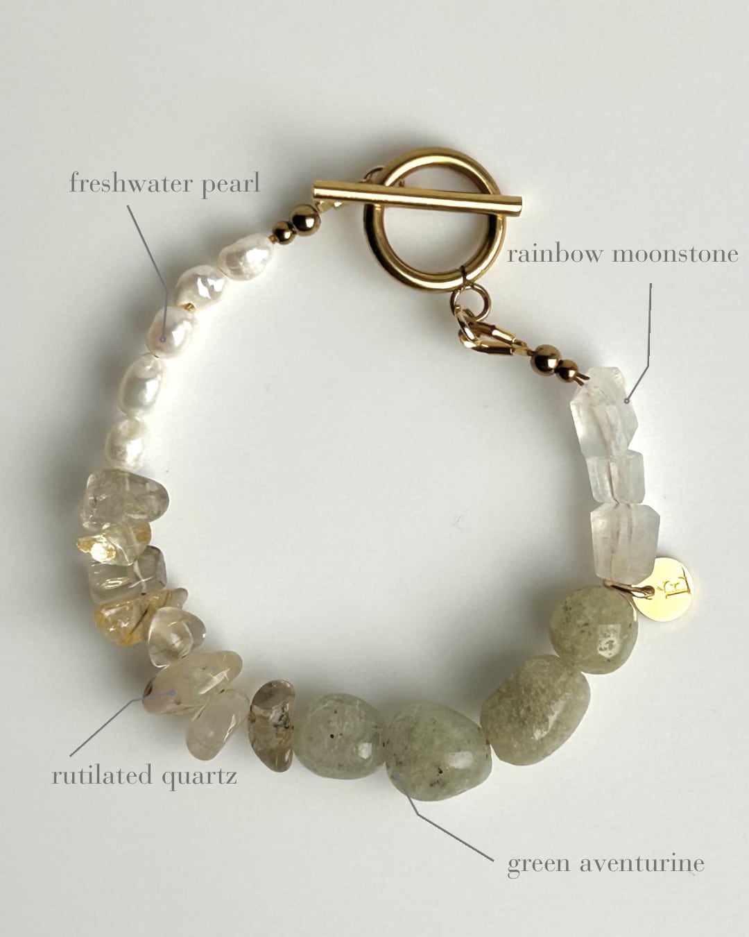 【7日間限定販売/送料無料】GREEN AVENTURINE × RAINBOW MOONSTONE × RUTILATED QUARTZ × FRESHWATER PEARL
