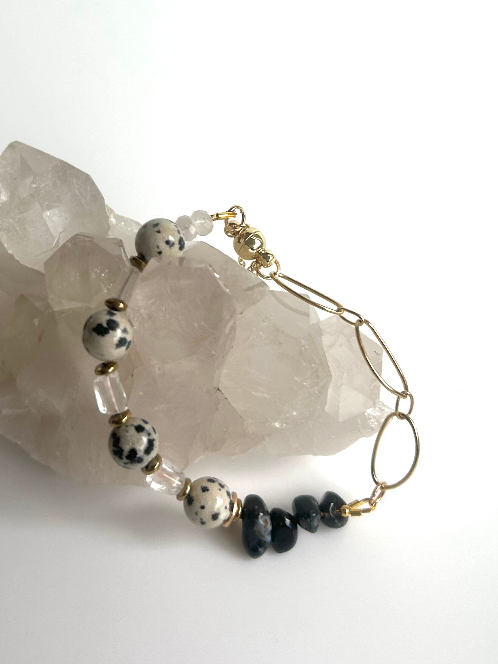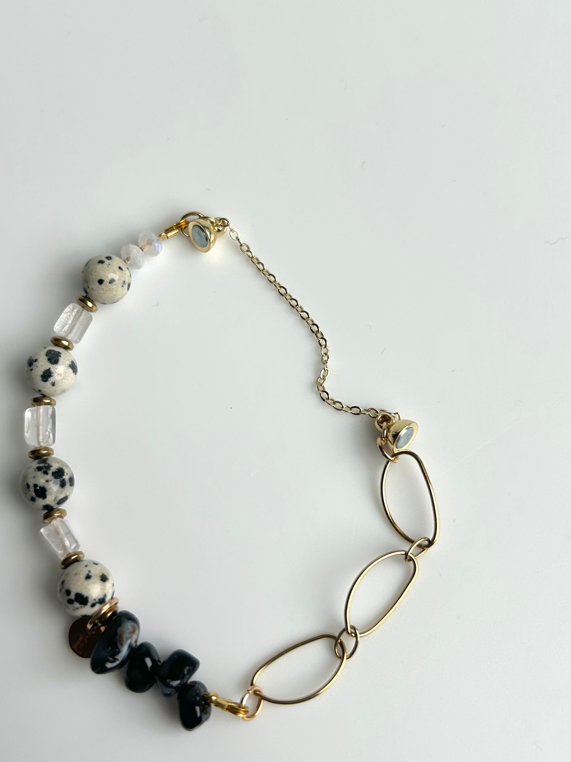 【7日間限定販売/送料無料】DALMATIAN JASPER X ONYX × CRYSTAL X RAINBOW MOONSTONE