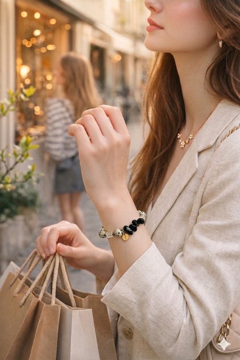 ふとした瞬間にムーンストーンが虹色に輝き、ショッピング中の高揚感をさらに引き立てます。